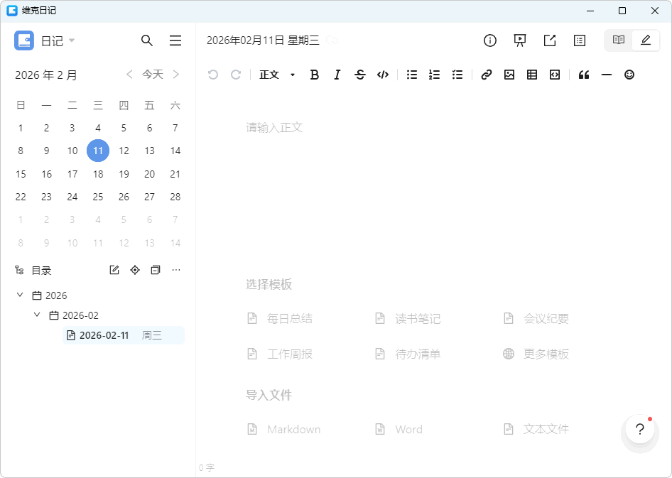 软件合集 维克日记 v1.7.0 推荐值:⭐️⭐️⭐️⭐️⭐️ 更新时间: 2026-02-12 加入收藏 立即下载 维克日记是一款设计优雅、开箱即用的日记软件,支持Markdown语法输入和实时预览。功能特性:一目了然的用户界面,简单免配置、开箱即用支持Markdown语法输入,内容原地实时预览日记支持表格可视化编辑、本地图片插入/粘贴支持输入密码登录,日记隐私内容更有保障支持按目录批量操作日记(如:删除等)数据纯本地保存,无惧云端第三方安全风险支持Windows、Mac、Linux多个系统平台 扫描关注微信公众号,第一时间获取网站最新动态 转载请说明来源于"榆念资源网" 本文地址:https://d.wildfun.top/d/Software/256.html 下载地址 下载榆念云盘下载 下载星航云盘下载 同类资源 Microsoft Edge v146.0.3856.84绿色版 大小: 抖音短视频音频提取 TESTE 榆念小说生成器源码分享 大小: 榆念多功能租车系统源码分享 大小: AI 工具导航站静态网页源码分享 大小: 番茶屋动漫APP v1.0 大小: 文章评论 加载中~